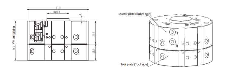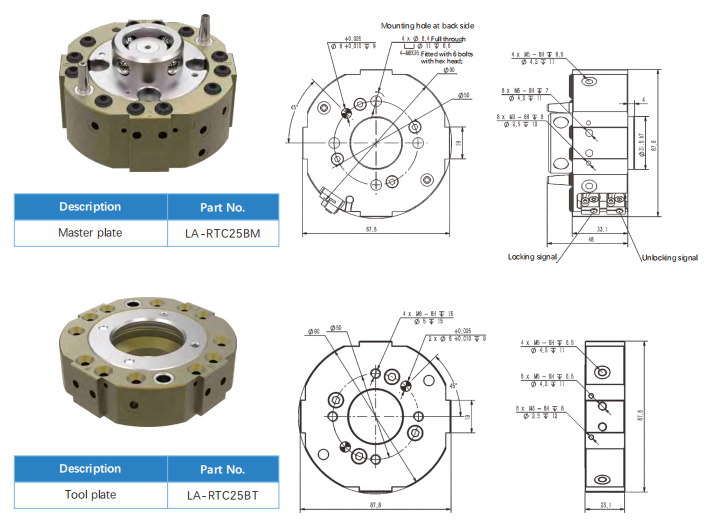3. Dimensional drawings of LA-RTC25 Robot Tool Changer: