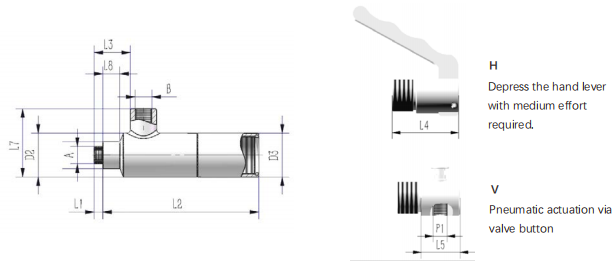 LA300L quick connector features the design of changeable actuation method. It has two forms of actuation including lever actuation and thumb valve button actuation, which allows the operator to change the method of actuation by simply unscrewing the rear portion of the connector and replacing it with other form of actuation.