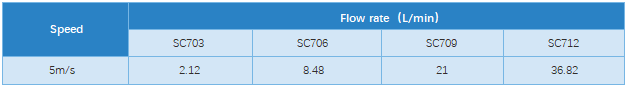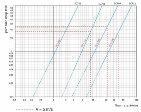 Test fluid: water; Direction of flow: plug->socket; max flow at the 5m/s velocity