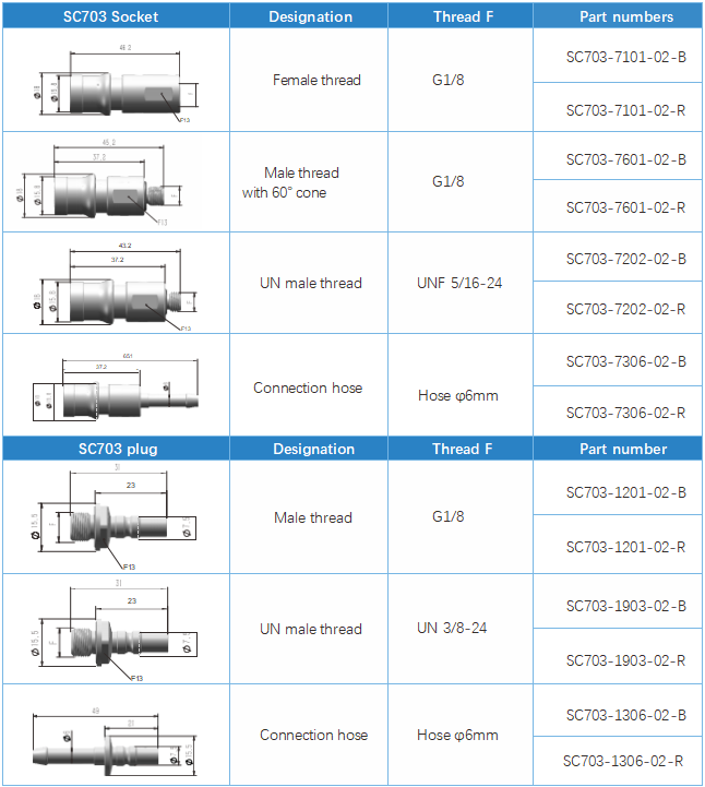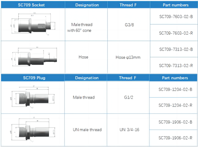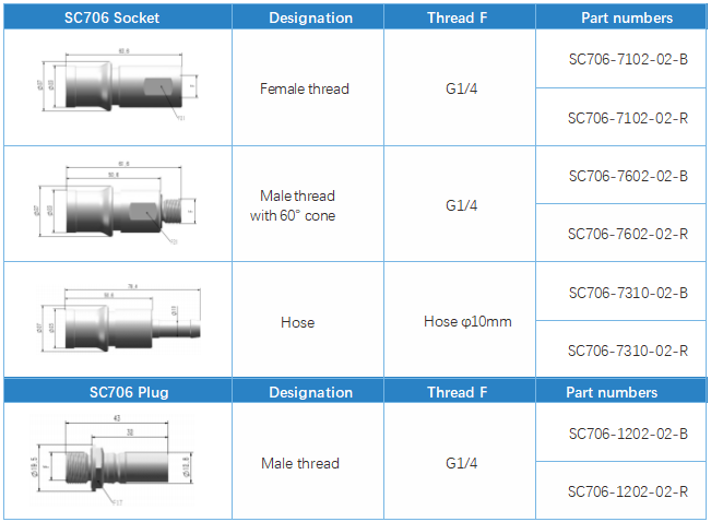 We provide 2 colors (blue and red) of customized quick-release couplings, which allows the operator to immediately identify the circuits.